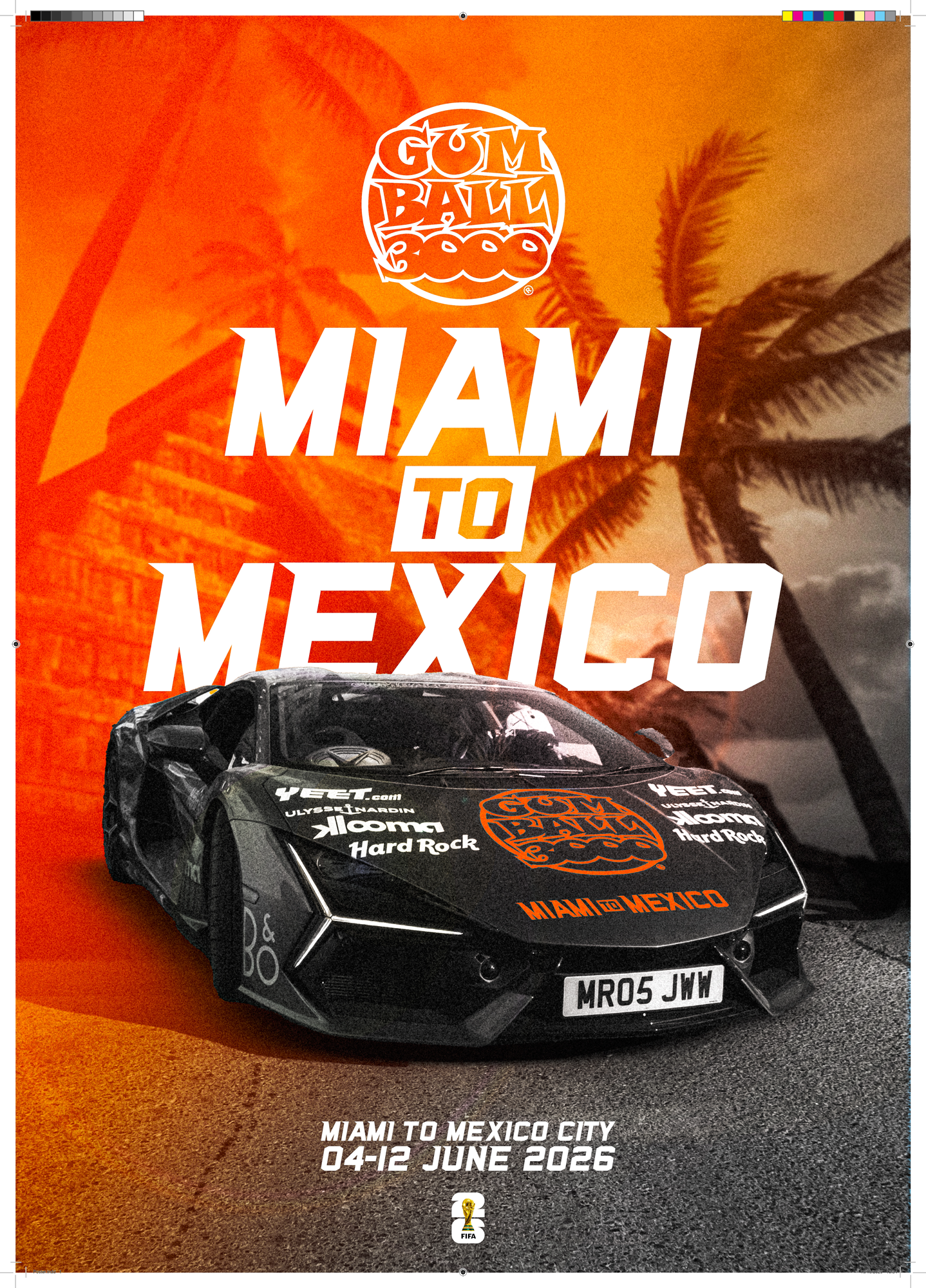 As part of the interview process for Gumball 3000, I was tasked with creating a poster and a logo lockup for their upcoming event in 2026, 'Miami to Mexico'. Below is my submission.
